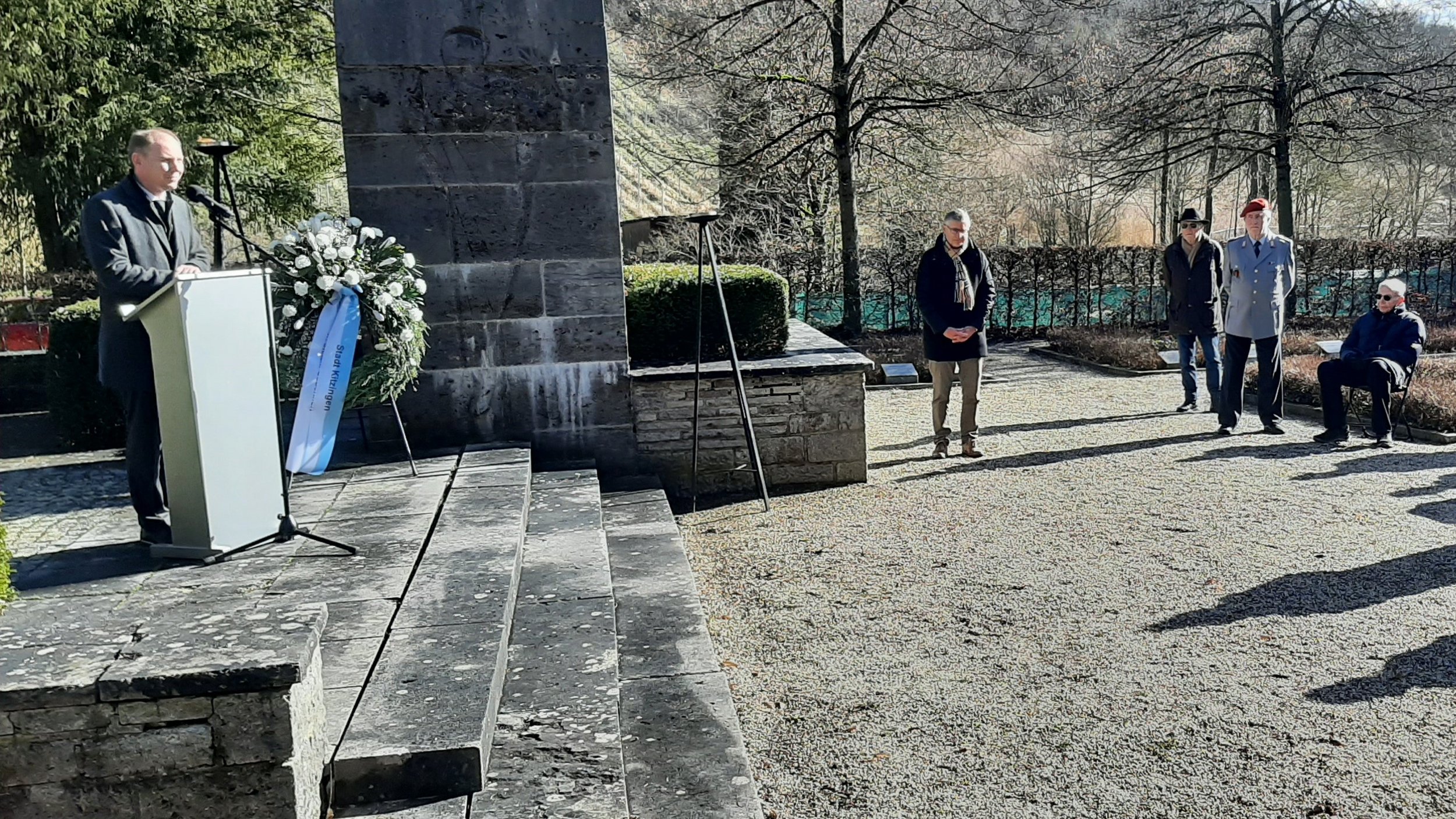 Die Präsidenten und Führungen mancher Länder wären heute besser unter uns, wünschte sich Stefan Güntner mit Blick auf die Eskalation im Konflikt zwischen Rußland und der Ukraine. "Suche den Frieden und jage ihm nach", erinnerte die evangelische Dekanin Kerstin Baderschneider daran, dass Frieden keine Selbstverständlichkeit sei und immerwährendes Bemühen erfordere. Gemeinsam mit dem katholischen Pfarrer Gerhard Spöckl begleitete sich das Gedenken mit einem geistlichen Impuls.