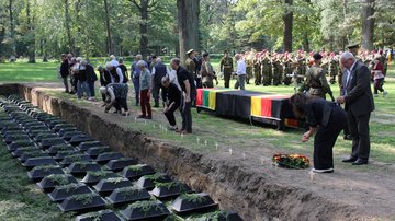 Nach der Anreise über Stettin und Danzig war das litauische Kaunas das erste Ziel der Reisegruppe in den baltischen Ländern. Dort fand auf der deutschen Kriegsgräberstätte die Einbettung von gefallenen Wehrmachtssoldaten statt, die der Volksbund in den vergangenen Monaten in Litauen exhumiert hatte. Darunter waren auch die sterblichen Überreste des Sanitätsgefreiten Max Beyreuther. Er gilt als einmillionster, vom Volksbund seit Beginn der 1990er Jahre geborgener deutscher Kriegstoter. In einer feierlichen Zeremonie wurden seine Gebeine ebenso wie die von etwa 80 weiteren Wehrmachtssoldaten zur dauerhaften Ruhe gebettet. Eine Ehrenformation der Bundeswehr und der litauischen Streitkräfte, musikalische Begleitung durch das Heeresmusikkorps gaben diesem besonderen Ereignis einen besonderen Rahmen.